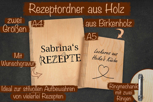 Personalisierter Rezeptordner aus Birkenholz