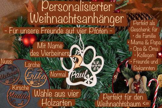Personalisierter Pfoten Christbaumschmuck mit Namen