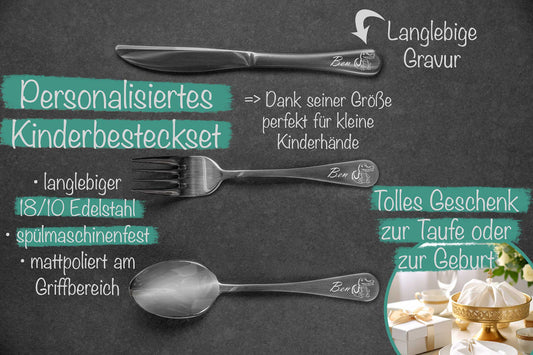 Personalisiertes Kinderbesteck mit Gravur 3-teilig