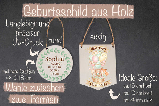 Namensschild mit Geburtsdaten aus Holz personalisiert