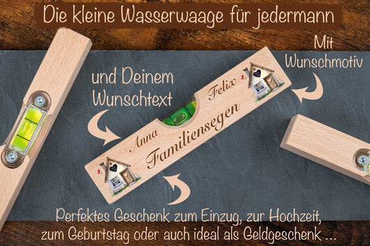 Wasserwaage personalisiert mit Deinem Wunschtext - ideal zum Einzug oder zur Hochzeit