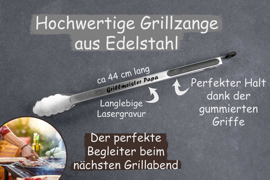 Personalisierte Grillzange aus Edelstahl mit Gummigriffen