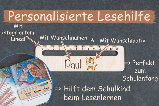 Lineal mit Wunschname aus Holz und vielen Motiven
