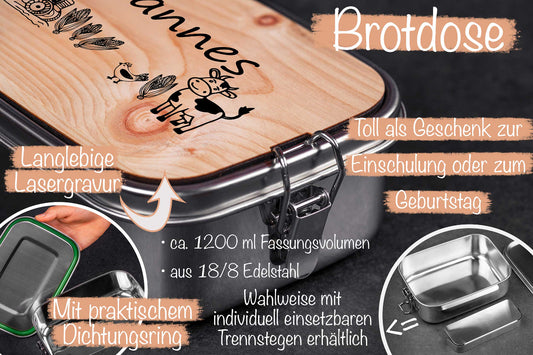 Brotdose personalisiert mit Namen mit Holzdeckel