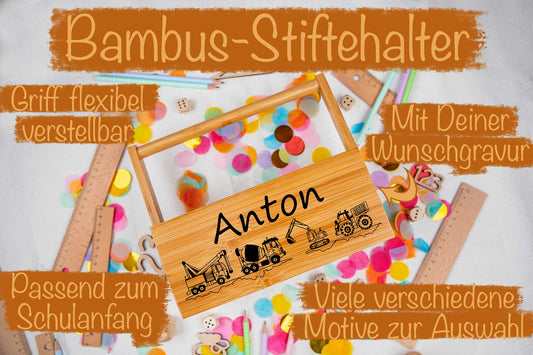 Stiftehalter personalisiert aus Bambus - Einschulungsgeschenk