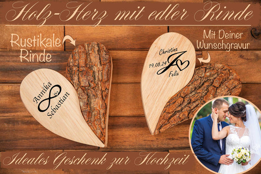 Rustikales Holz Herz personalisiert mit Gravur und edler Rinde