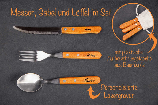 Messer, Gabel und Löffel mit personalisierter Lasergravur