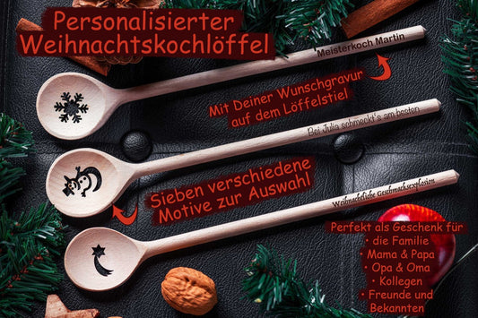 Olivenholz-Kochlöffel mit Deiner Wunschgravur und Loch