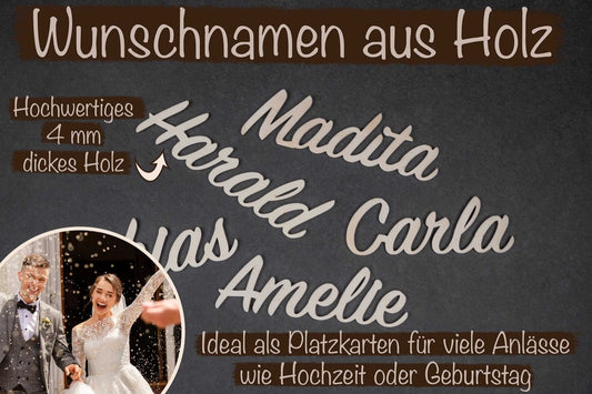 Namen aus Holz ideal als Platzkarten oder Tischkarten