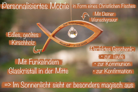 Mobile Christlicher Fisch mit Deiner Wunschgravur