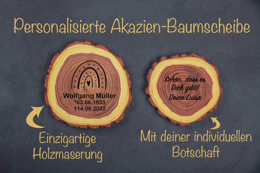 Personalsierte Akazienbaumscheibe mit Deiner Wunschgravur