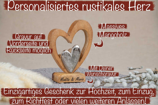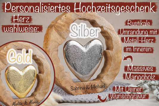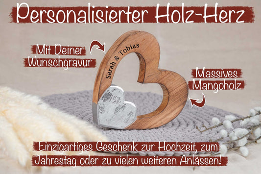 Hochzeitsgeschenk Holz Herz mit Deiner Wunschgravur personalisiert