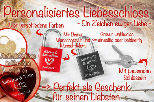 Liebesschloss mit Gravur personalisiert in vier Farben