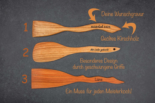 Kirschholz-Pfannenwender in geschwungener Form