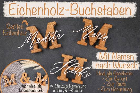 Buchstabe mit Name aus Eichenholz - Hochzeitsgeschenk