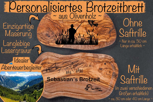 Brotzeitbrett Olivenholz mit vielen Motiven und Wunschgravur - Schneidebrett