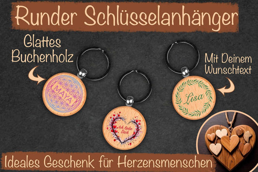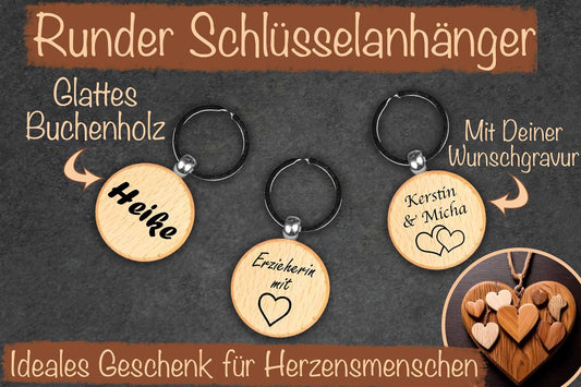 Personalisierter Schlüsselanhänger mit Wunschtext rund