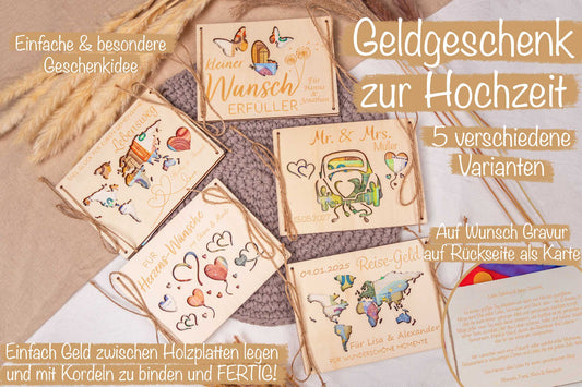 Geldgeschenk zur Hochzeit personalisiert mit Gravur - Mr. & Mrs.