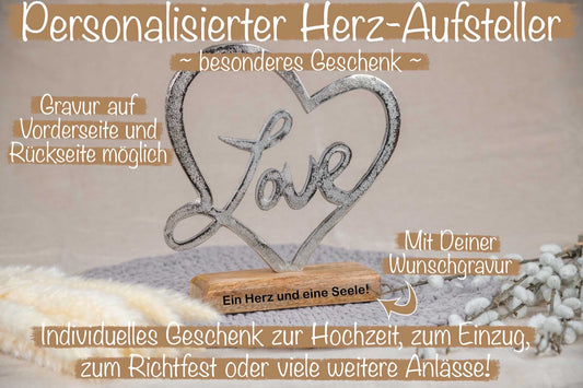 Hochzeitsgeschenk Herz Love mit Deiner Wunschgravur personalisiert