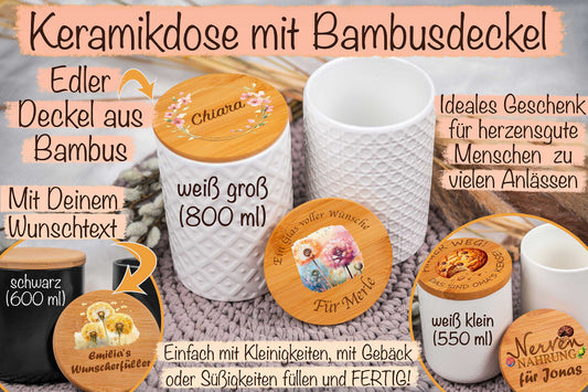 Keramikdose personalisiert mit Name und Holzdeckel - Vorratsglas, Keksdose