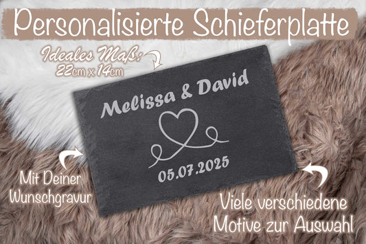 Schieferplatte mit Deinem Wunschtext und Liebesmotiven