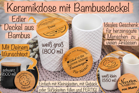 Keramikdose personalisiert mit Name und Holzdeckel - Vorratsglas