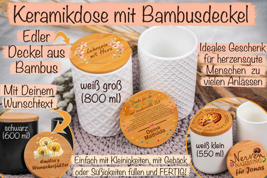 Keramikdose personalisiert mit Name und Holzdeckel - Vorratsglas, Keksdose