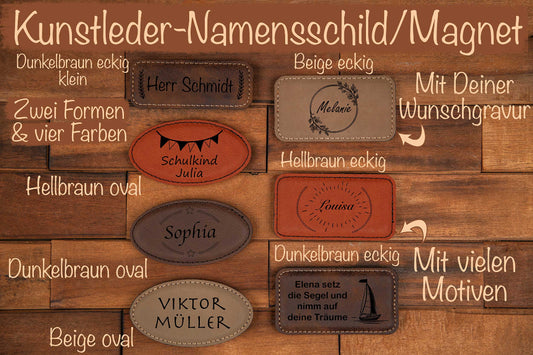 Namensschild Kunstleder mit Deiner Wunschgravur für Kleidung - Magnet personalisiert