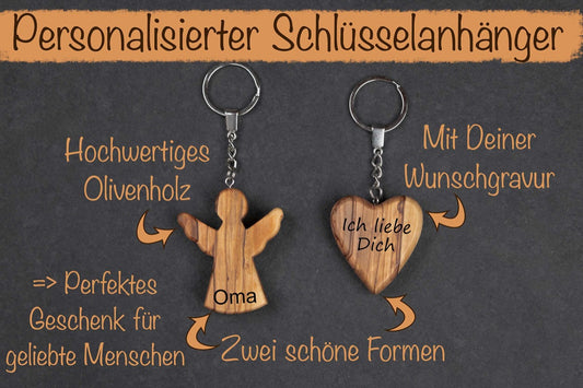 Personalisierter Schlüsselanhänger mit individueller Gravur aus Olivenholz
