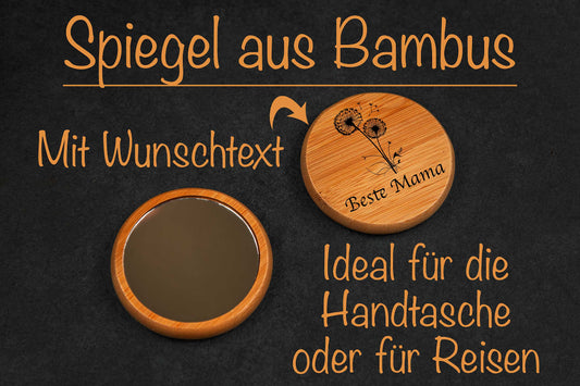 Spiegel aus Bambus personalisiert mit Wunschgravur - Kosmetikspiegel, Schminkspiegel