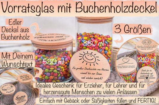 Pesonalisiertes Vorratsglas mit Edelstahl-Deckel und Wunschgravur