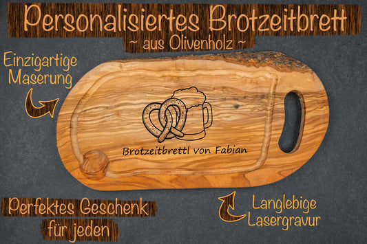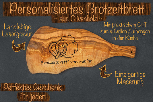 Olivenholz Brotzeitbrett mit Deiner Wunschgravur und vielen Motiven- Schneidebrett