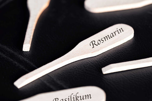 Kräuterstecker aus Holz mit persönlicher Gravur
