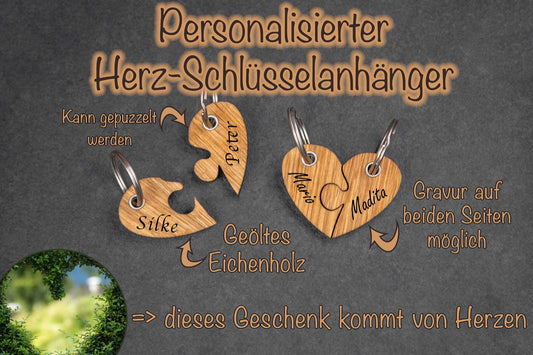 Personalisierter Schlüsselanhänger Herz Puzzle mit individueller Gravur