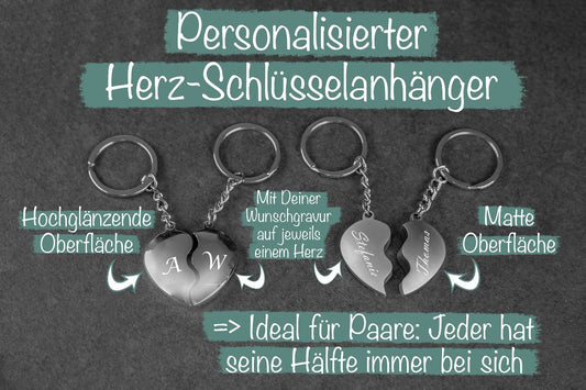 Schlüsselanhänger personalisiert mit Gravur - Herz Pärchen Schlüsselanhänger