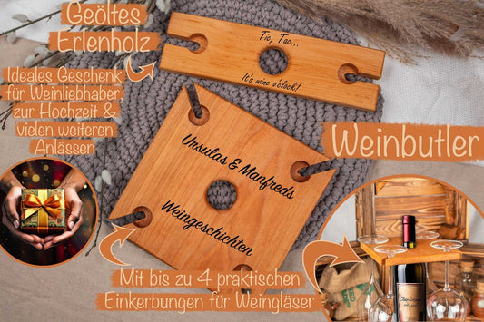Personalisierter Weinbutler mit Wunschgravur aus Holz