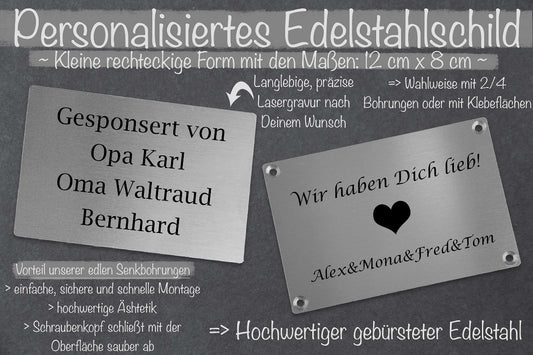 Personalisiertes rechteckiges Edelstahlschild mit Deiner Wunschgravur