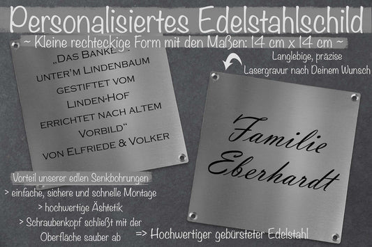 Personalisiertes quadratisches Edelstahlschild mit Deiner Wunschgravur
