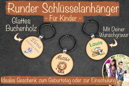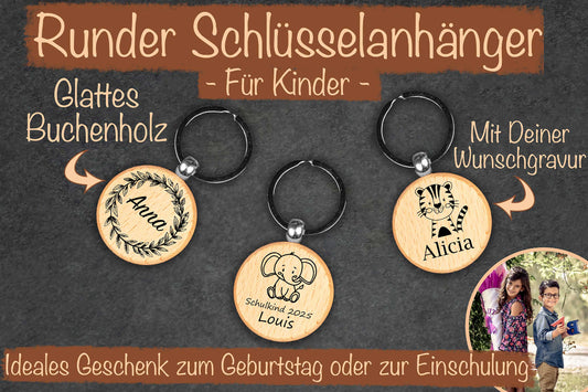 Personalisierter Schlüsselanhänger für Kinder mit Wunschtext rund - Schultütenanhänger