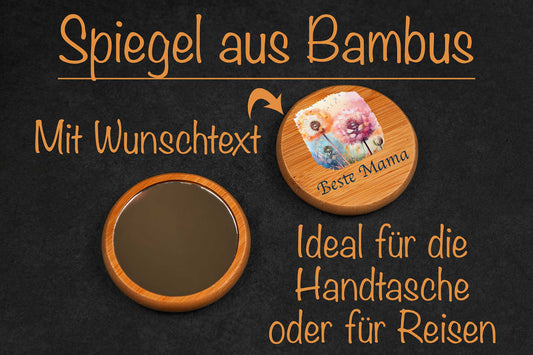 Spiegel aus Bambus personalisiert mit Wunschgravur - Kosmetikspiegel, Schminkspiegel