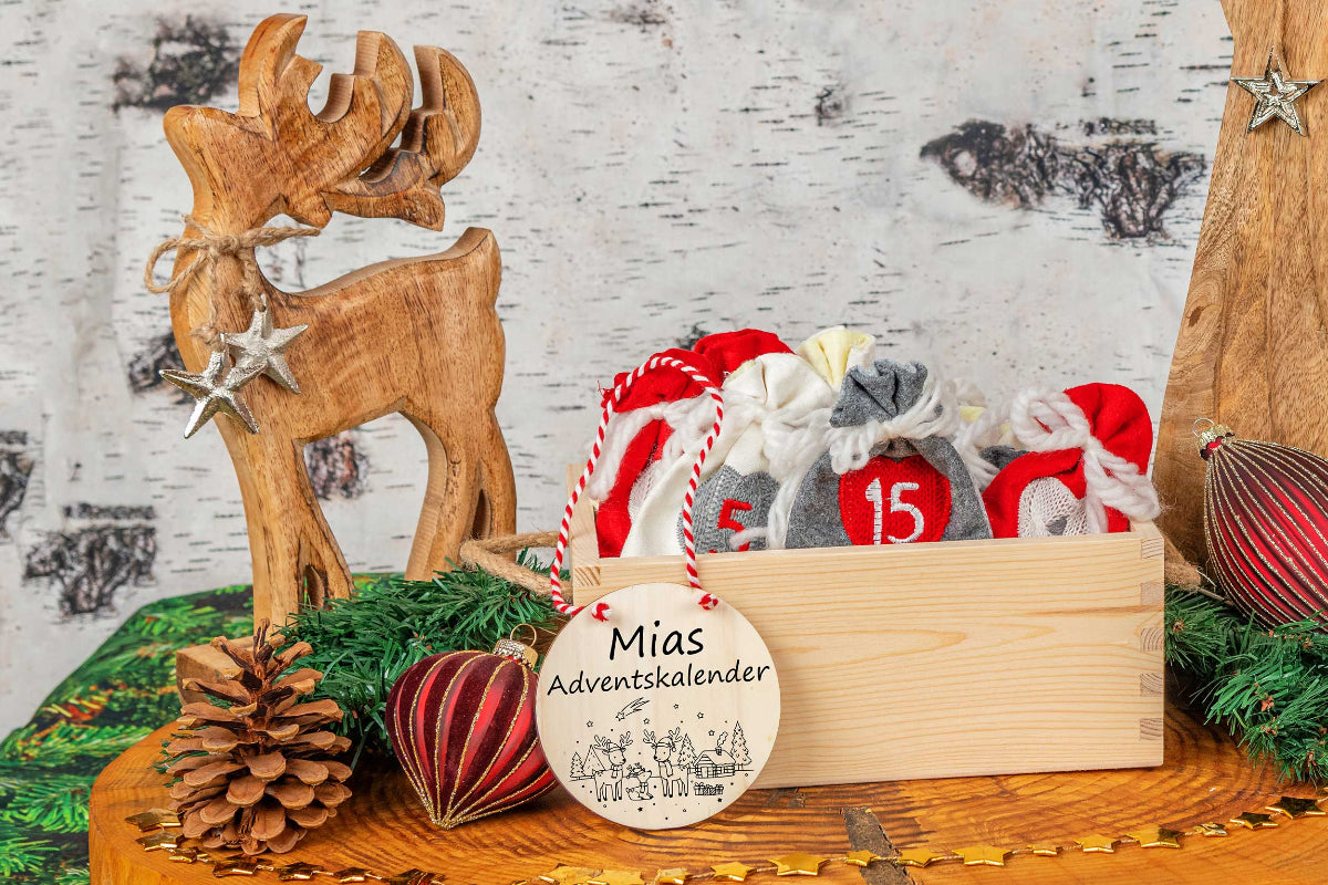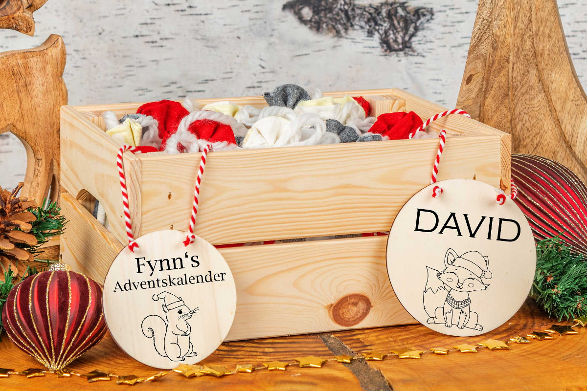 Adventskalender Holzschild mit Name - Adventskiste mit Holzschild