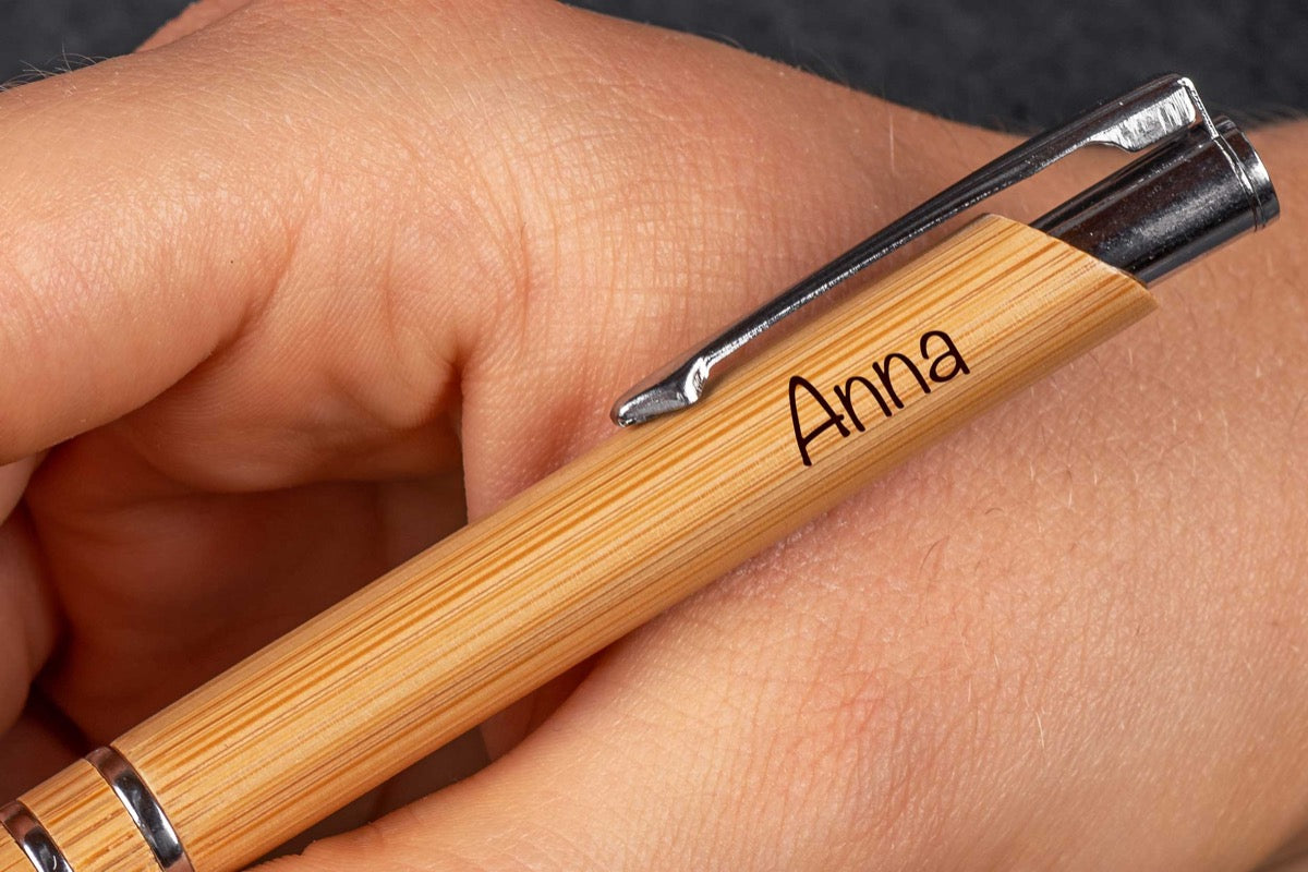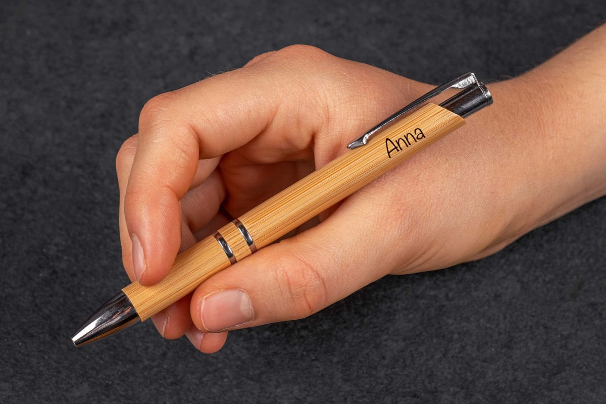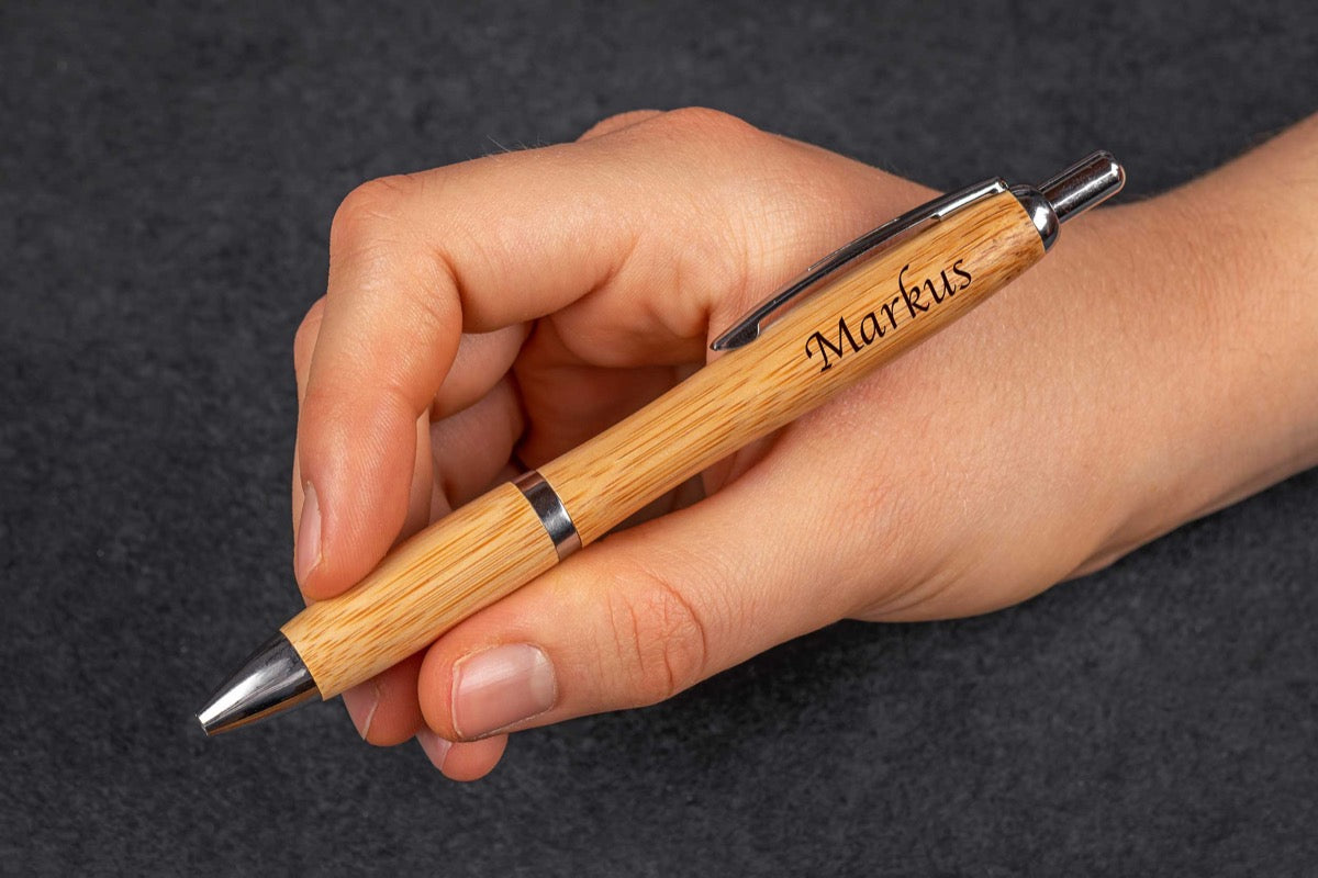 Personalisierter Kugelschreiber aus Bambus mit Gravur