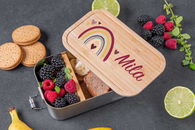Brotdose personalisiert mit Bambusdeckel für Kinder bunt