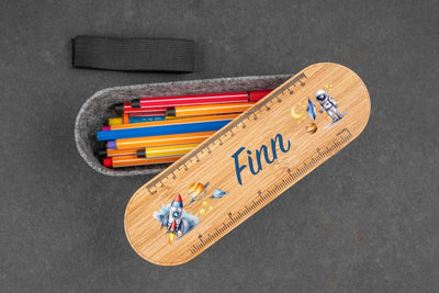 Unser originelles Federmäppchen aus robustem, recycelten RPET-Filz mit edlem Bambusdeckel ist ein wahrer Hingucker.😇