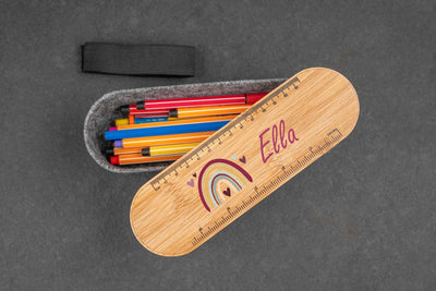 Unser originelles Federmäppchen aus robustem, recycelten RPET-Filz mit edlem Bambusdeckel ist ein wahrer Hingucker.😇