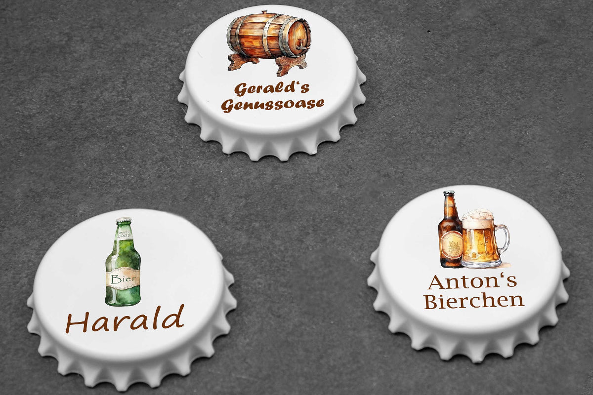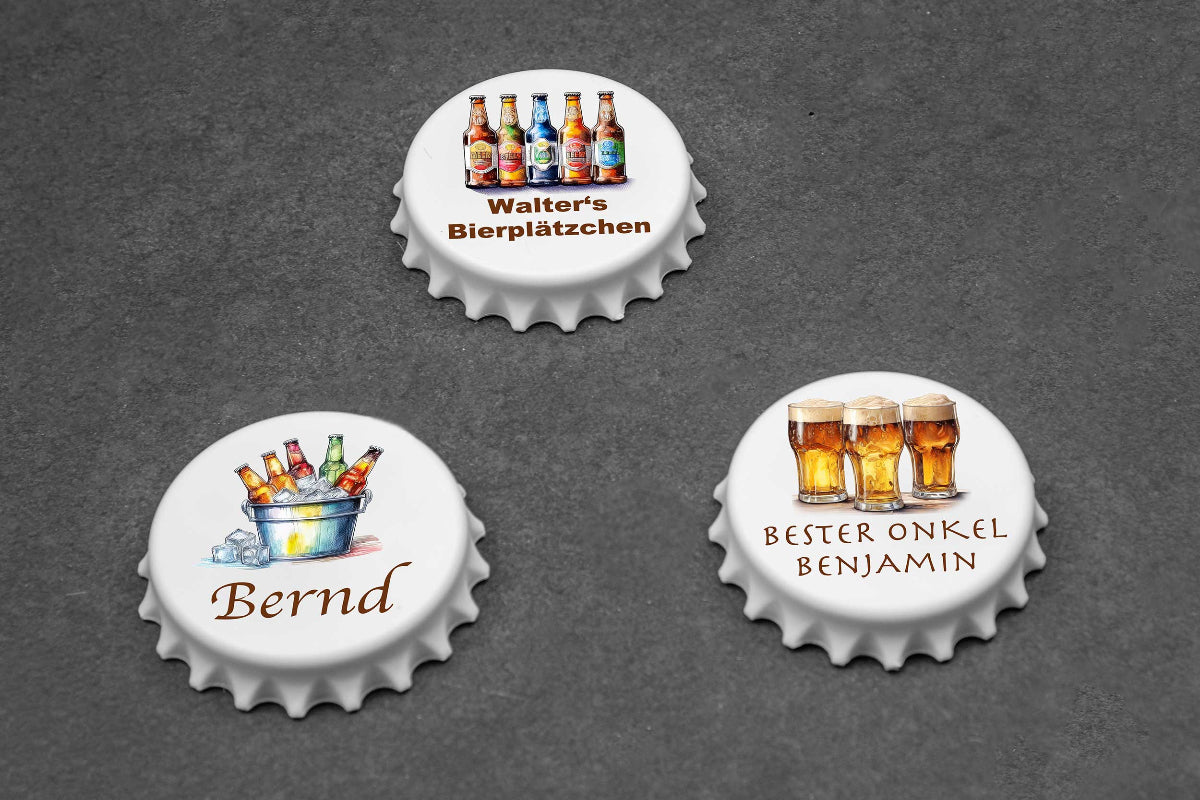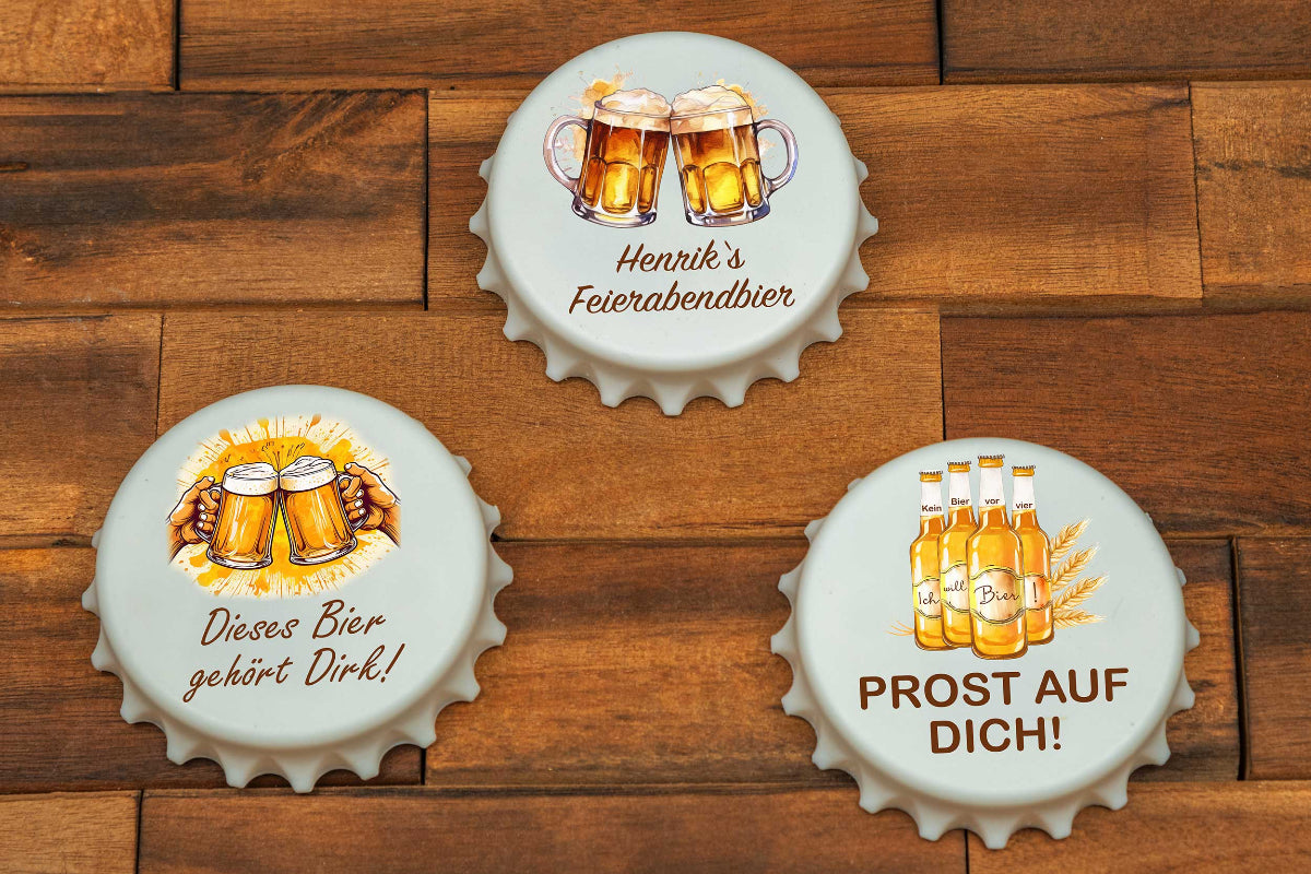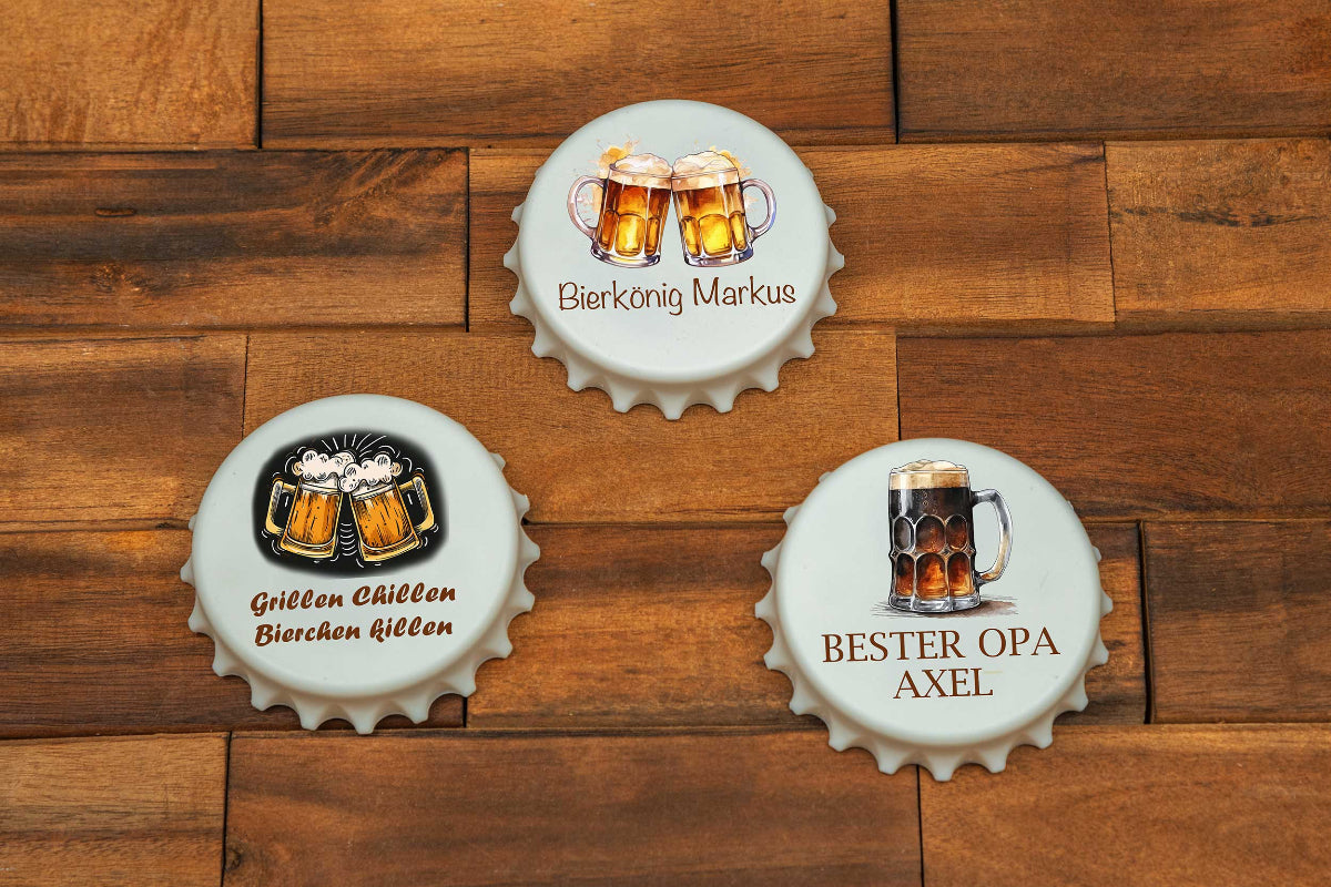 Du bist auf der Suche nach einem Geschenk für deinen Papa oder Opa? Dann haben wir hier das Richtige für Ihn. Einen originellen Flaschenöffner als Kronkorken mit bunten Biermotiven. So schmeckt dem Beschenken das Bier gleich viel besser.🍺