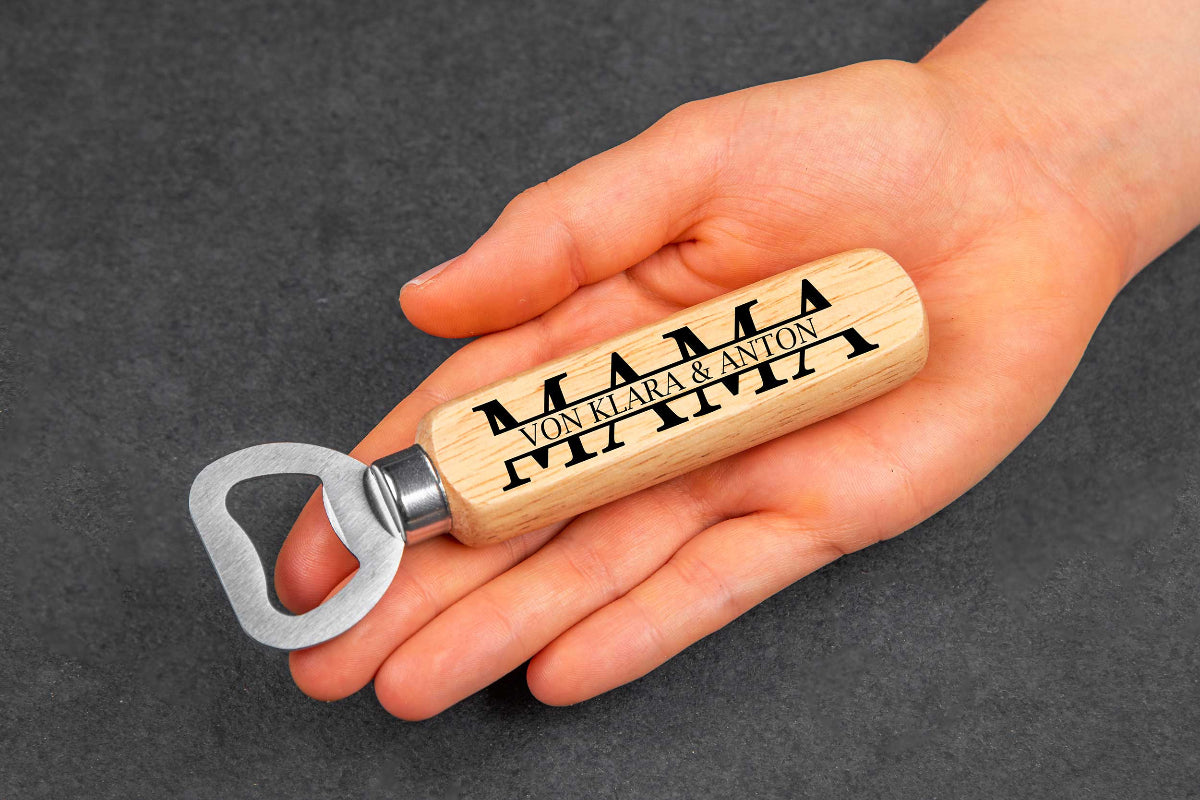 Flaschenöffner personalisiert mit Holzgriff - Vatertag Papa Geschenk
