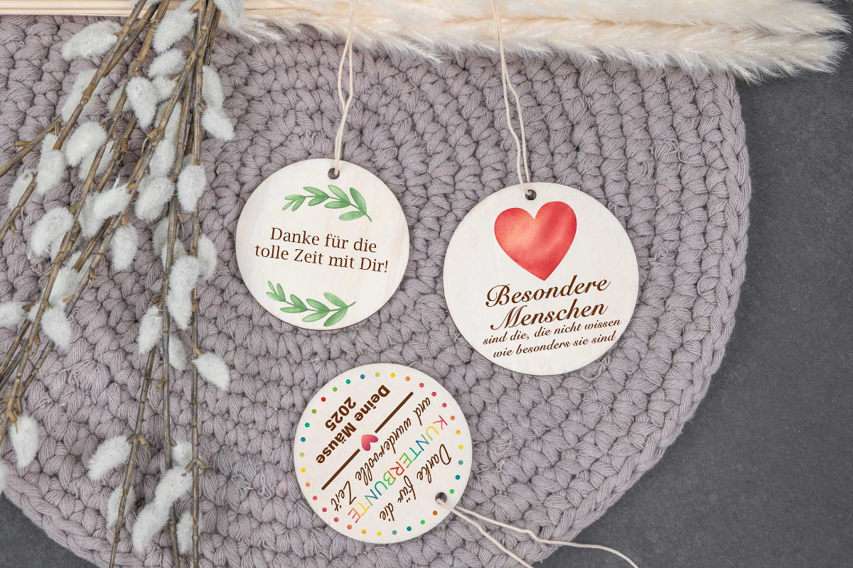 Unsere personalisierten Holzanhänger sind der Knaller an jedem Geschenk. Sie peppen es richtig auf und eignen sich nach dem besonderen Tag als besonderes Erinnerungsstück. So bekommt man ein besonderes und vor allem ein schönes Erinnerungsstück.😇✨