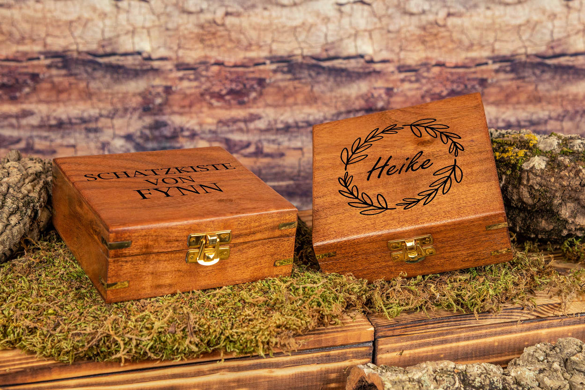 Jede Schatzkiste wird mit viel Liebe ❤️ zum Detail mit einer individuellen Gravur versehen.