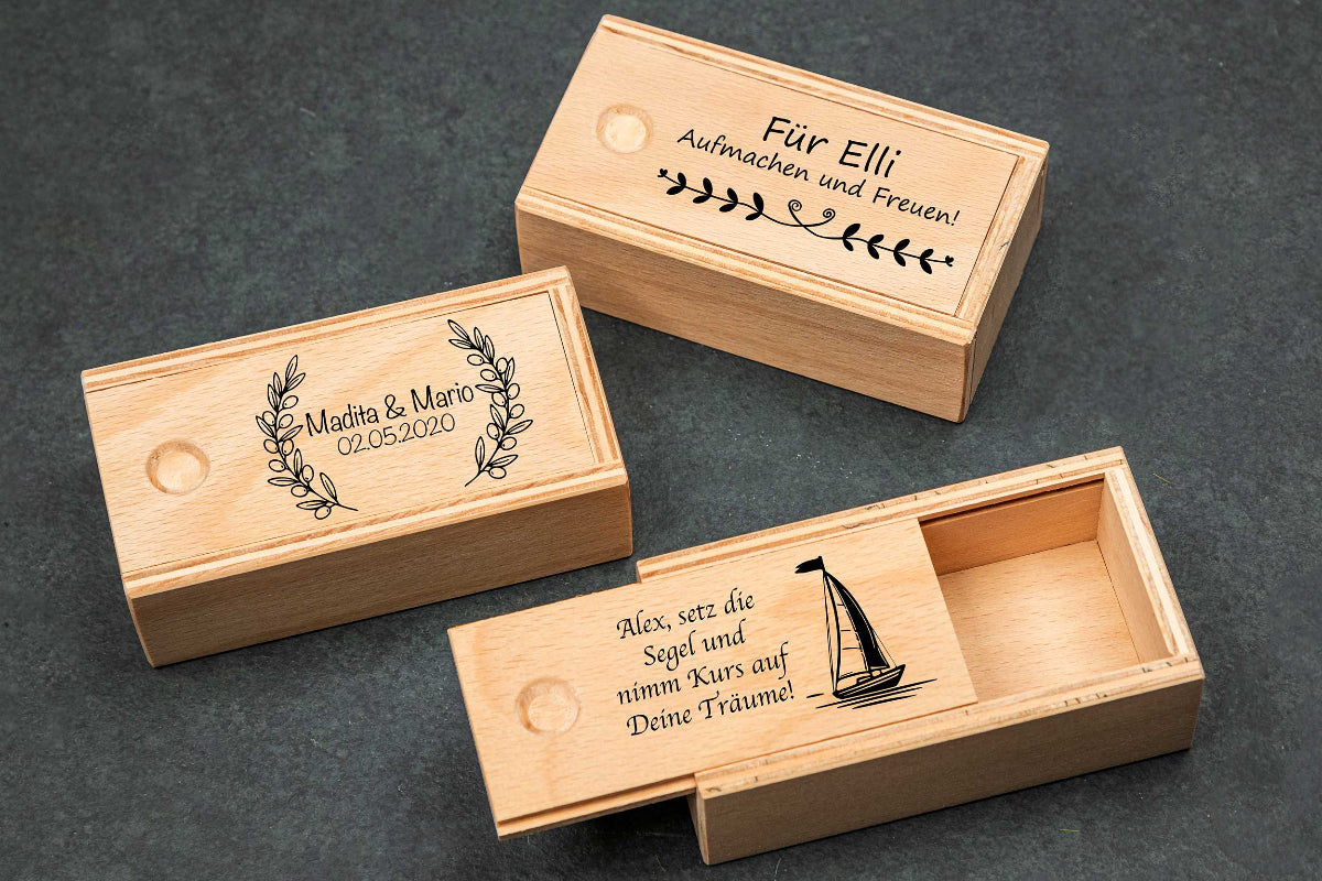 Kleine Holzschatulle mit Schiebedeckel personalisiert mit Deiner Wunschgravur